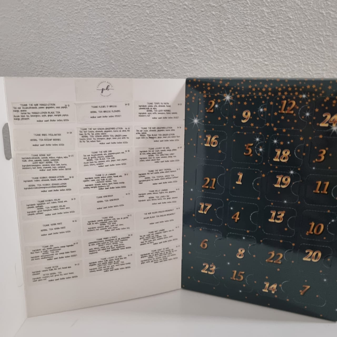 Chaque petite fenêtre cache un thé, infusion, ou un mélange gourmand différent en sachet pyramide.