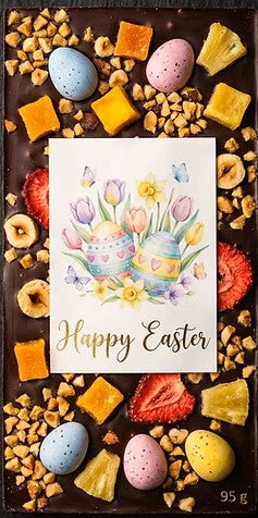 Chocolat au Lait « Happy Easter » 95 gr Texture croquante aux noisettes et de notes fruitées.